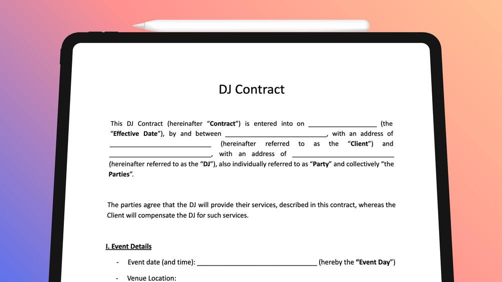 DJ Contract Template (DOCX)£0+£0+https://schema.org/InStockgbpSignHouseSignHouse1 ratingName a fair price:£I want this!Size466 KBAdd to wishlist New wishlistShareShare on XShare on Facebook Copy linkCopy product URLRatings5(1 rating)155 stars100%4 stars0%3 stars0%2 stars0%1 star0%